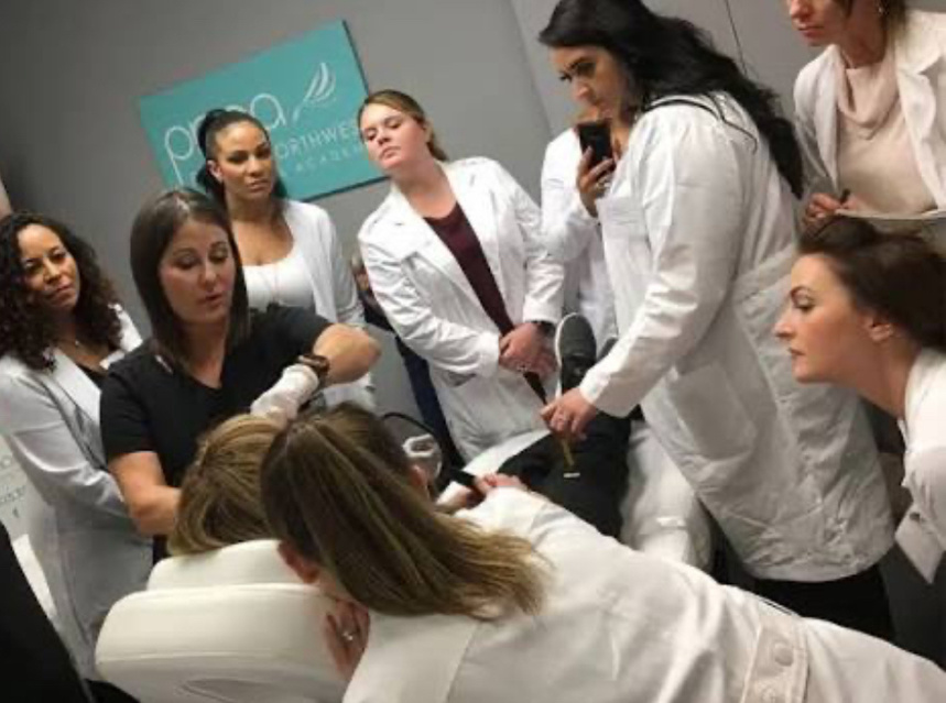 Beyond the treatment room, she leads a growing Esthetician Community built on guidance, shared knowledge and raising professional standards.